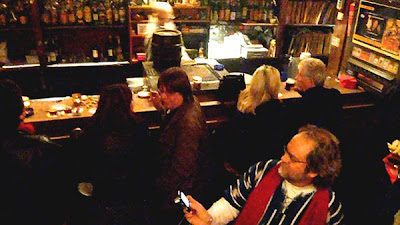 Eine Kneipe wie ein Wohnzimmer. Seit dem Eröffnungsjahr 1954 hat sich nicht viel geändert: 30 Quadratmeter mit Tresen, Schnapsregal, Barhockern und Fässchen. Was will man mehr? Hier füllt der Mensch den Platz. An so einem Ort beginnen die ausschweifenden Monologe über die Welt und was sie zusammenhält mit der Ankündigung:"Isch red' mal aus der Kneipe..." (Zitat aus Merian Düsseldorf)