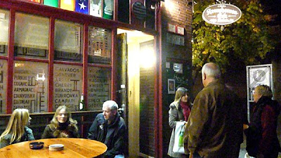 Eine Kneipe wie ein Wohnzimmer. Seit dem Eröffnungsjahr 1954 hat sich nicht viel geändert: 30 Quadratmeter mit Tresen, Schnapsregal, Barhockern und Fässchen. Was will man mehr? Hier füllt der Mensch den Platz. An so einem Ort beginnen die ausschweifenden Monologe über die Welt und was sie zusammenhält mit der Ankündigung:"Isch red' mal aus der Kneipe..." (Zitat aus Merian Düsseldorf)