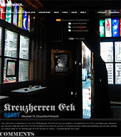 Eine Kneipe wie ein Wohnzimmer. Seit dem Eröffnungsjahr 1954 hat sich nicht viel geändert: 30 Quadratmeter mit Tresen, Schnapsregal, Barhockern und Fässchen. Was will man mehr? Hier füllt der Mensch den Platz. An so einem Ort beginnen die ausschweifenden Monologe über die Welt und was sie zusammenhält mit der Ankündigung:"Isch red' mal aus der Kneipe..." (Zitat aus Merian Düsseldorf)