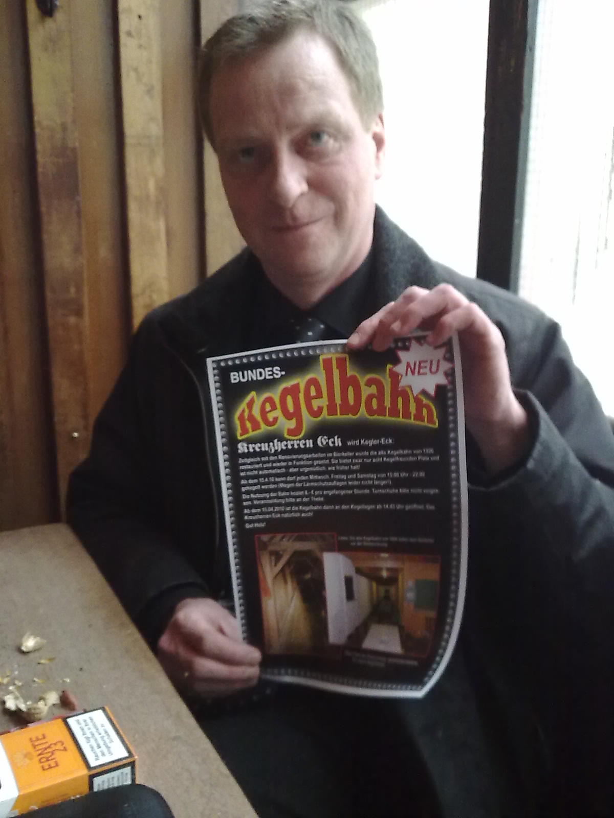Eine Kneipe wie ein Wohnzimmer. Seit dem Eröffnungsjahr 1954 hat sich nicht viel geändert: 30 Quadratmeter mit Tresen, Schnapsregal, Barhockern und Fässchen. Was will man mehr? Hier füllt der Mensch den Platz. An so einem Ort beginnen die ausschweifenden Monologe über die Welt und was sie zusammenhält mit der Ankündigung:"Isch red' mal aus der Kneipe..." (Zitat aus Merian Düsseldorf)