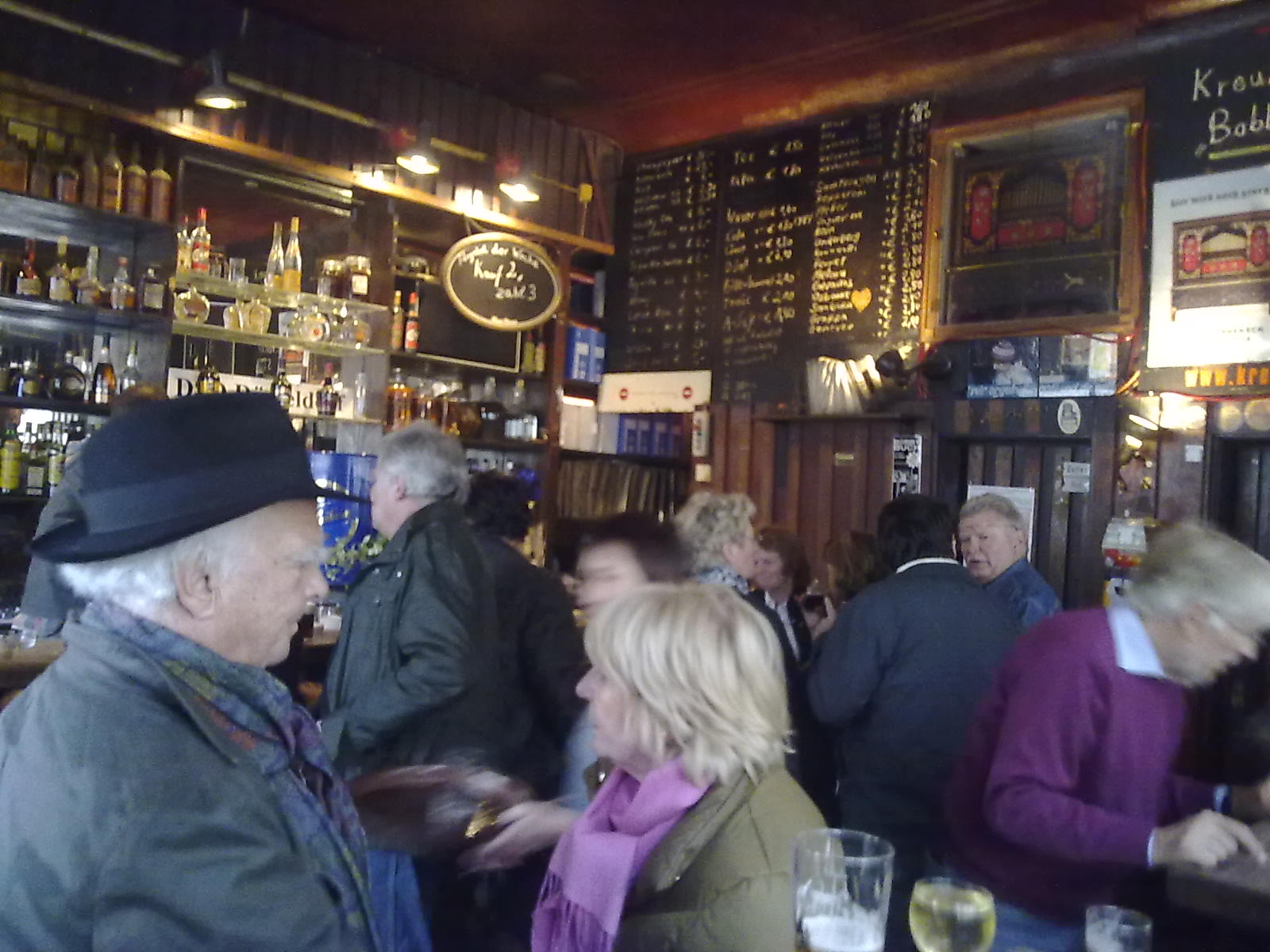 Eine Kneipe wie ein Wohnzimmer. Seit dem Eröffnungsjahr 1954 hat sich nicht viel geändert: 30 Quadratmeter mit Tresen, Schnapsregal, Barhockern und Fässchen. Was will man mehr? Hier füllt der Mensch den Platz. An so einem Ort beginnen die ausschweifenden Monologe über die Welt und was sie zusammenhält mit der Ankündigung:"Isch red' mal aus der Kneipe..." (Zitat aus Merian Düsseldorf)