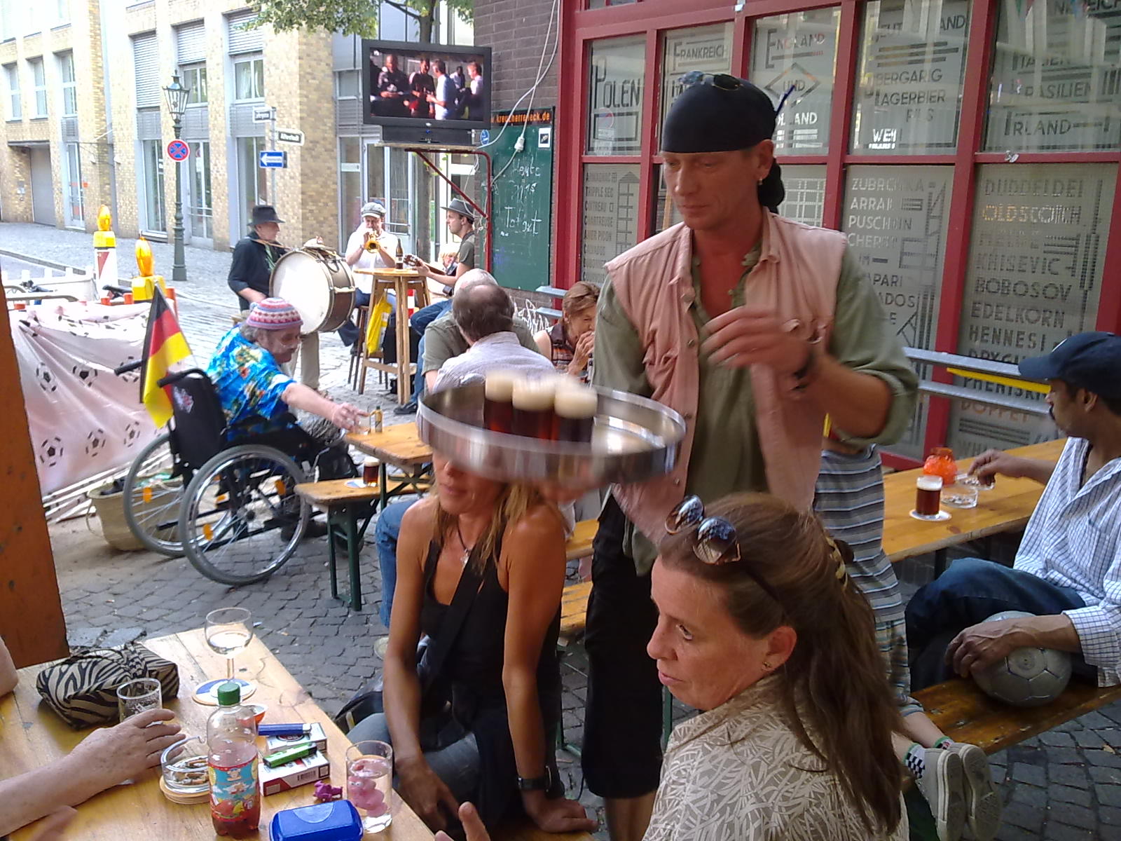 Eine Kneipe wie ein Wohnzimmer. Seit dem Eröffnungsjahr 1954 hat sich nicht viel geändert: 30 Quadratmeter mit Tresen, Schnapsregal, Barhockern und Fässchen. Was will man mehr? Hier füllt der Mensch den Platz. An so einem Ort beginnen die ausschweifenden Monologe über die Welt und was sie zusammenhält mit der Ankündigung:"Isch red' mal aus der Kneipe..." (Zitat aus Merian Düsseldorf)