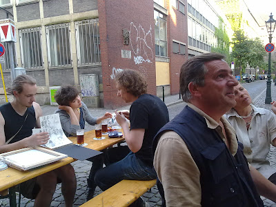 Eine Kneipe wie ein Wohnzimmer. Seit dem Eröffnungsjahr 1954 hat sich nicht viel geändert: 30 Quadratmeter mit Tresen, Schnapsregal, Barhockern und Fässchen. Was will man mehr? Hier füllt der Mensch den Platz. An so einem Ort beginnen die ausschweifenden Monologe über die Welt und was sie zusammenhält mit der Ankündigung:"Isch red' mal aus der Kneipe..." (Zitat aus Merian Düsseldorf)