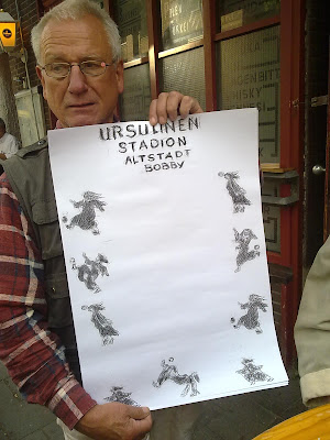 Eine Kneipe wie ein Wohnzimmer. Seit dem Eröffnungsjahr 1954 hat sich nicht viel geändert: 30 Quadratmeter mit Tresen, Schnapsregal, Barhockern und Fässchen. Was will man mehr? Hier füllt der Mensch den Platz. An so einem Ort beginnen die ausschweifenden Monologe über die Welt und was sie zusammenhält mit der Ankündigung:"Isch red' mal aus der Kneipe..." (Zitat aus Merian Düsseldorf)