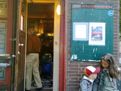 Eine Kneipe wie ein Wohnzimmer. Seit dem Eröffnungsjahr 1954 hat sich nicht viel geändert: 30 Quadratmeter mit Tresen, Schnapsregal, Barhockern und Fässchen. Was will man mehr? Hier füllt der Mensch den Platz. An so einem Ort beginnen die ausschweifenden Monologe über die Welt und was sie zusammenhält mit der Ankündigung:"Isch red' mal aus der Kneipe..." (Zitat aus Merian Düsseldorf)
