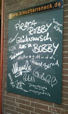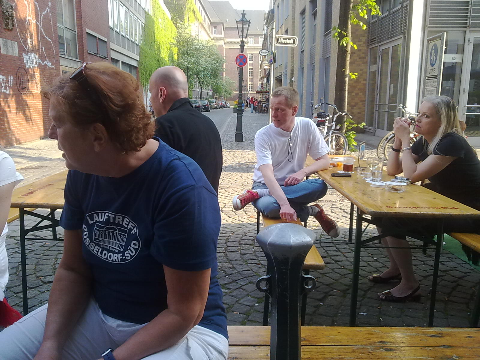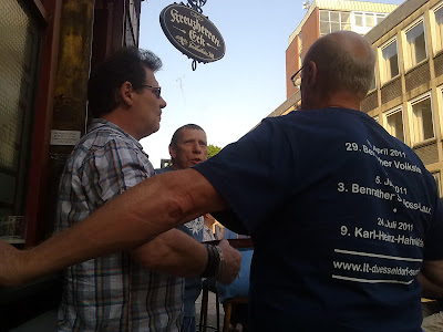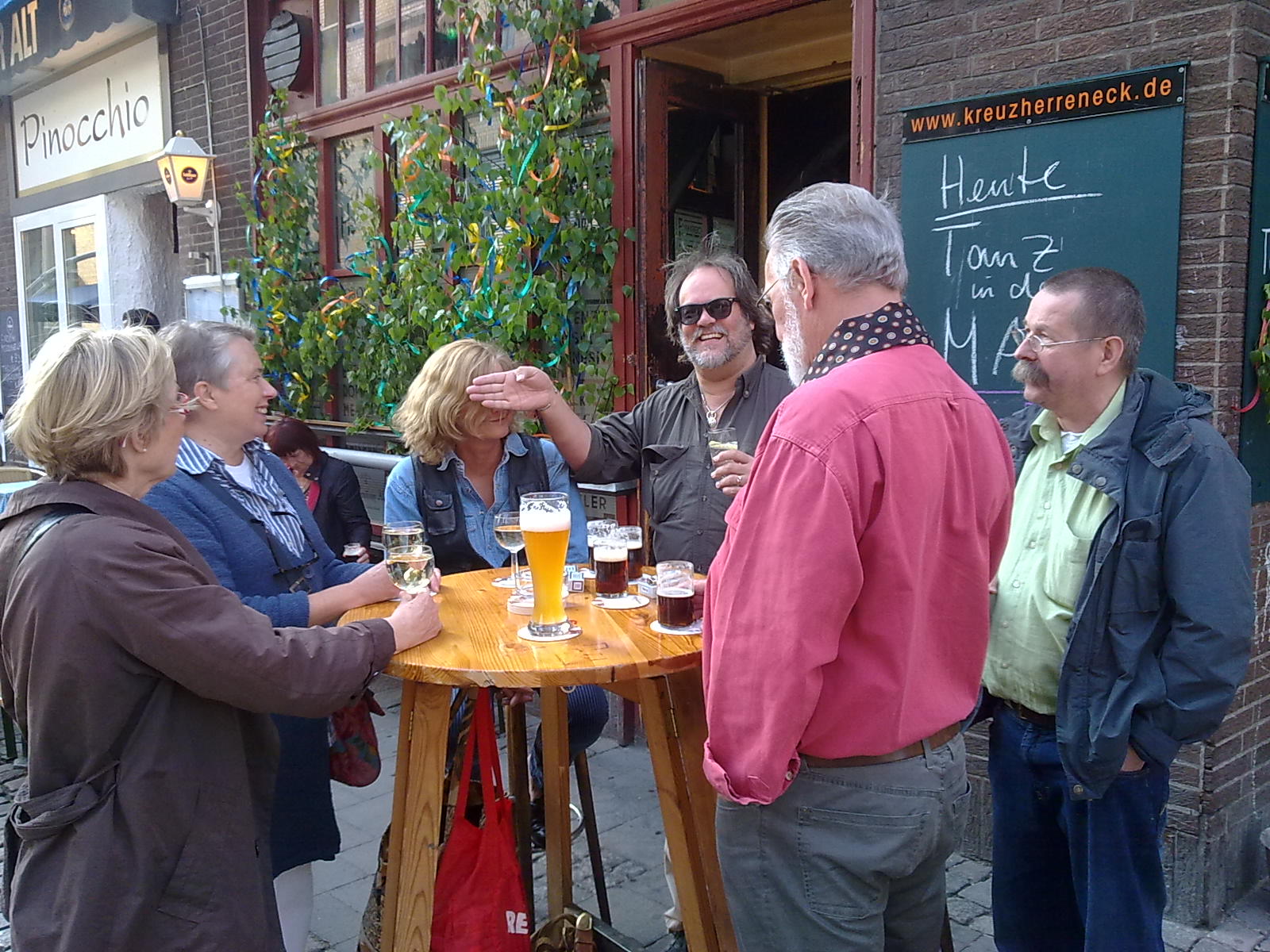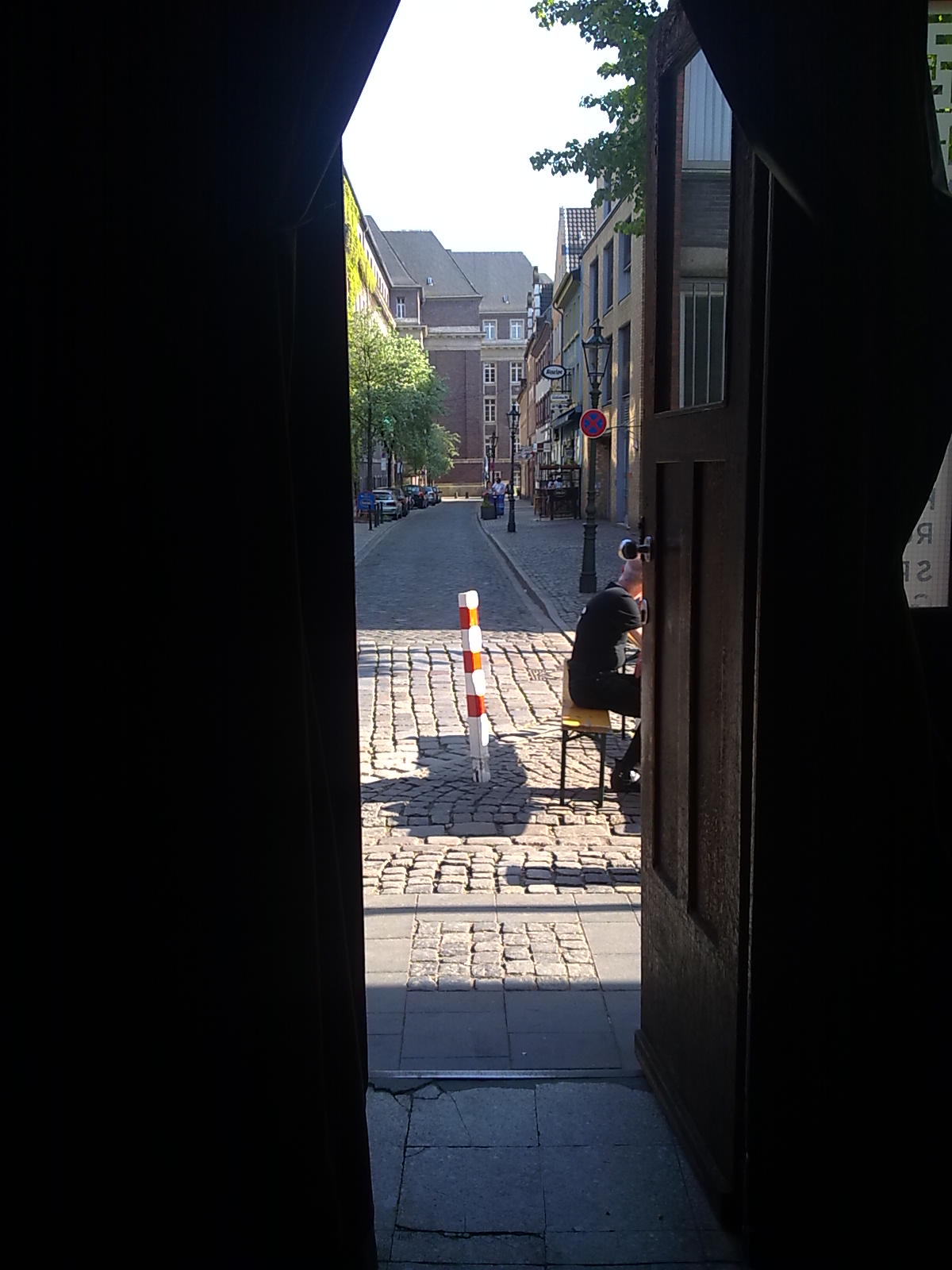 Eine Kneipe wie ein Wohnzimmer. Seit dem Eröffnungsjahr 1954 hat sich nicht viel geändert: 30 Quadratmeter mit Tresen, Schnapsregal, Barhockern und Fässchen. Was will man mehr? Hier füllt der Mensch den Platz. An so einem Ort beginnen die ausschweifenden Monologe über die Welt und was sie zusammenhält mit der Ankündigung:"Isch red' mal aus der Kneipe..." (Zitat aus Merian Düsseldorf)