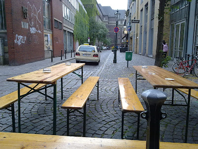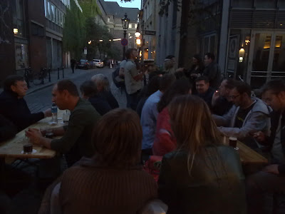 Eine Kneipe wie ein Wohnzimmer. Seit dem Eröffnungsjahr 1954 hat sich nicht viel geändert: 30 Quadratmeter mit Tresen, Schnapsregal, Barhockern und Fässchen. Was will man mehr? Hier füllt der Mensch den Platz. An so einem Ort beginnen die ausschweifenden Monologe über die Welt und was sie zusammenhält mit der Ankündigung:"Isch red' mal aus der Kneipe..." (Zitat aus Merian Düsseldorf)