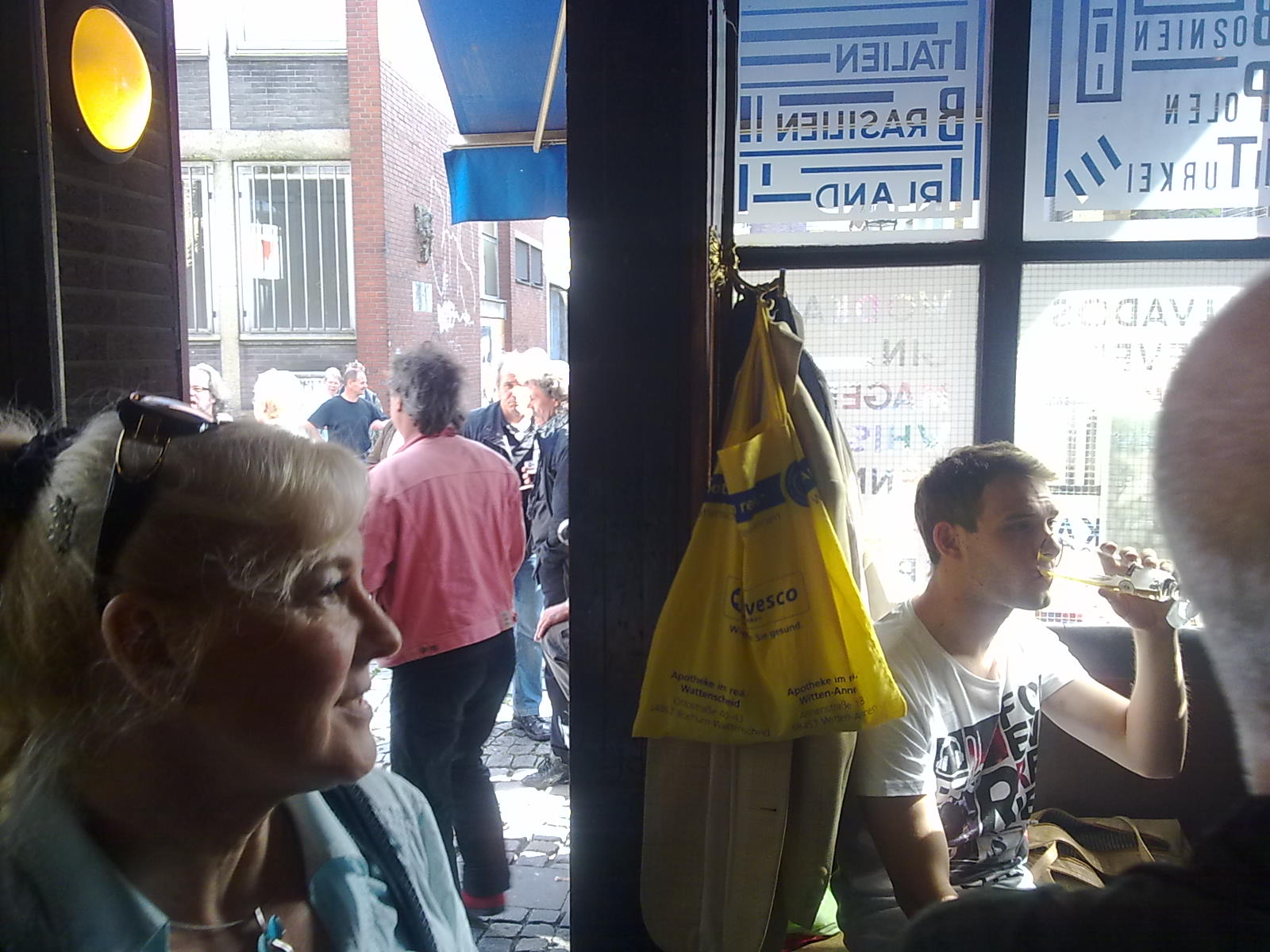 Eine Kneipe wie ein Wohnzimmer. Seit dem Eröffnungsjahr 1954 hat sich nicht viel geändert: 30 Quadratmeter mit Tresen, Schnapsregal, Barhockern und Fässchen. Was will man mehr? Hier füllt der Mensch den Platz. An so einem Ort beginnen die ausschweifenden Monologe über die Welt und was sie zusammenhält mit der Ankündigung:"Isch red' mal aus der Kneipe..." (Zitat aus Merian Düsseldorf)