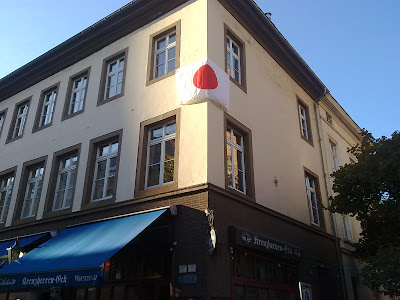 Eine Kneipe wie ein Wohnzimmer. Seit dem Eröffnungsjahr 1954 hat sich nicht viel geändert: 30 Quadratmeter mit Tresen, Schnapsregal, Barhockern und Fässchen. Was will man mehr? Hier füllt der Mensch den Platz. An so einem Ort beginnen die ausschweifenden Monologe über die Welt und was sie zusammenhält mit der Ankündigung:"Isch red' mal aus der Kneipe..." (Zitat aus Merian Düsseldorf)